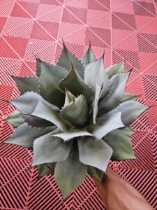 画像に写っているのは、アガベ・パリーです。丸く整ったロゼットと、グレーがかった葉色が特徴。パリーは、アガベの中でも特に耐寒性が高く、日本の冬でも比較的育てやすい品種です。どんな空間にも馴染みやすく、耐寒性もありドライガーデンの主役にも引き立て役にもなります。