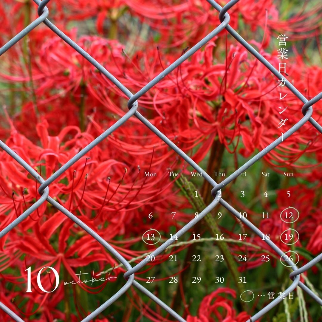 10月の営業日カレンダーをご案内します。