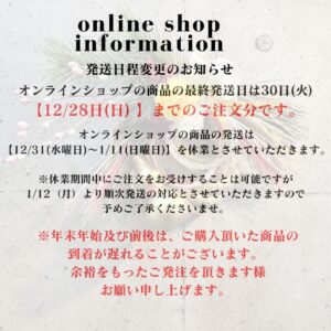 オンラインショップの発送スケジュールが変更となります。