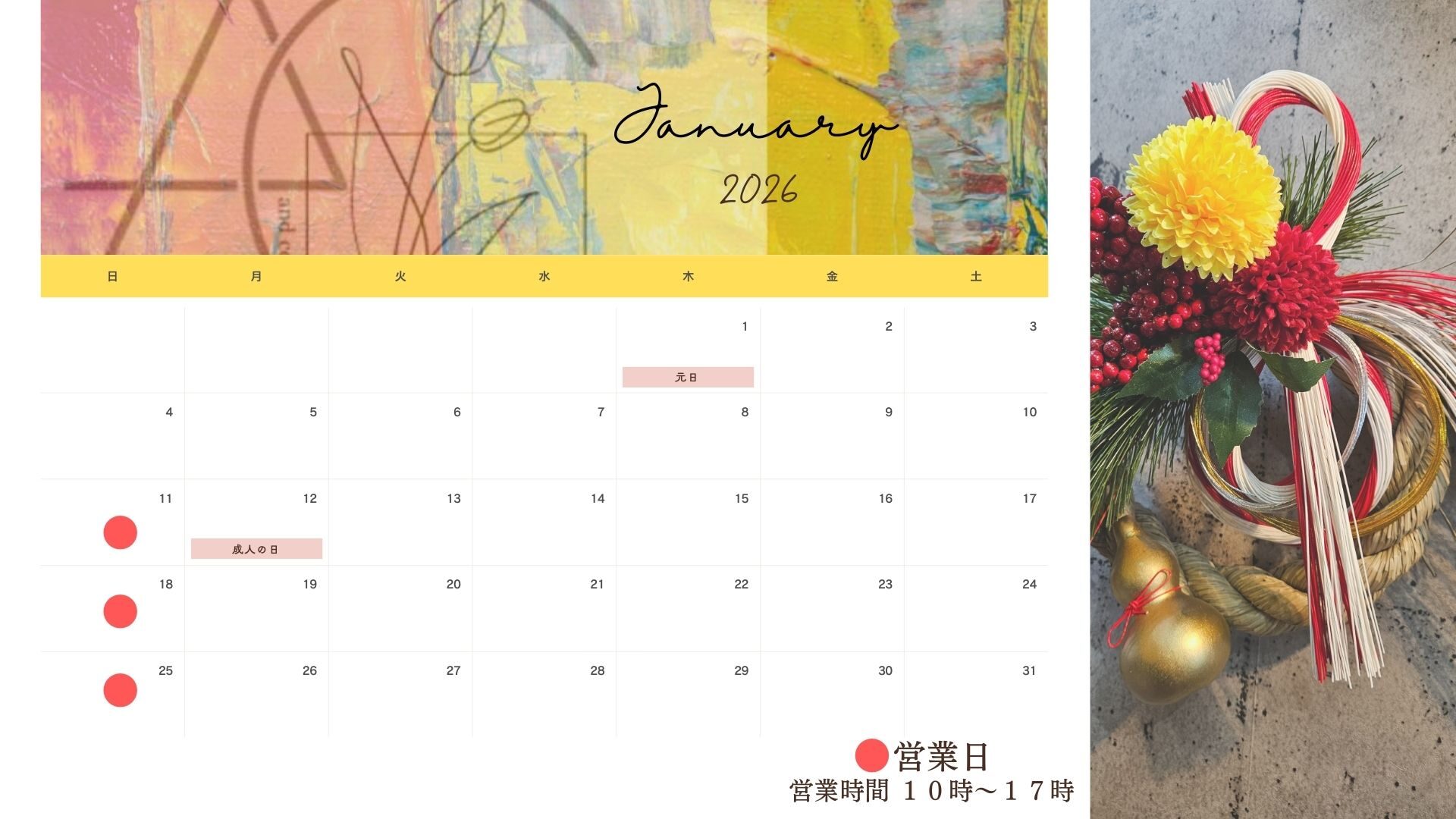 営業日: 1月11日(日)、18日(日)、25日(日)