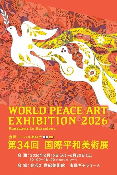「平和」をテーマに、日本を代表するアーティストの作品が一堂に会するこの美術展。 2026年度は、日本の古都・金沢、そしてスペインの芸術都市・バルセロナの2都市で開催されます。